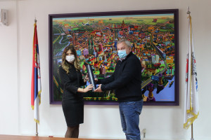 Драгана Купрешанин, заменица градоначелника Панчева је у Градској кући свечано уручила Новембарску награду коју је ове године добила Општа болница Панчево, директору др Слободану Овуки.
