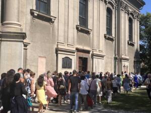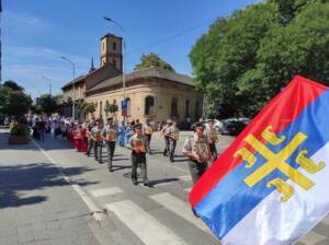 Након Свете литургије и причешћа кренула је литија, улицама Панчева, Браће Јовановић, Карађорђевом, Војводе Радомира Путника, а затим кроз Сокаче до зграде Градске управе, где је на платоу пред окупљеним верницима резан славски колач.