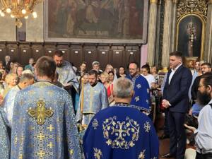 Протојереј ставрофор Радослав Радмановић, архијерејски намесник панчевачки честитао је славу градоначелнику и окупљеним грађанима изразивши срећу што се празник Успења Пресвете Богородице прославља и као слава Града Панчева.