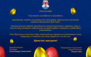 Александар Стевановић, градоначелник Панчева и Тигран Киш, председник Скупштине града Панчева упутили су честитку поводом предстојећих Васкршњих празника. Поштоване суграђанке и суграђани, који Васкрс [...]