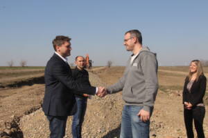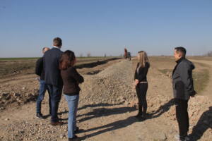 Aleksandar Stevanović gradonačelnik Pančeva, Maja Vitman gradska menadžerka i Vladislava Maksimović većnica za poljoprivredu, selo i ruralni razvoj obišli su radove u ataru Dolova.